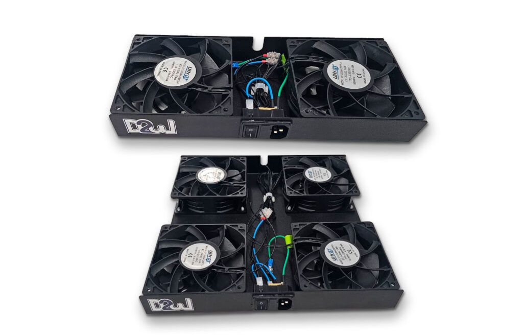 O Sistema de Ventilação da D2W foi desenvolvido para oferecer máxima eficiência na refrigeração de equipamentos instalados em racks e gabinetes. Disponível em kits com dois e quatro ventiladores bivolts, ele mantém o fluxo de ar ideal, ajudando a controlar a temperatura e prolongar a vida útil dos componentes.