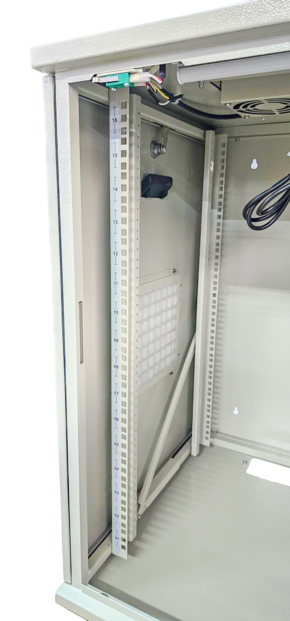 - Tampas Laterais com Aletas de Ventilação: Inclui filtro de partículas para evitar entrada de resíduos e garantir proteção dos equipamentos.
