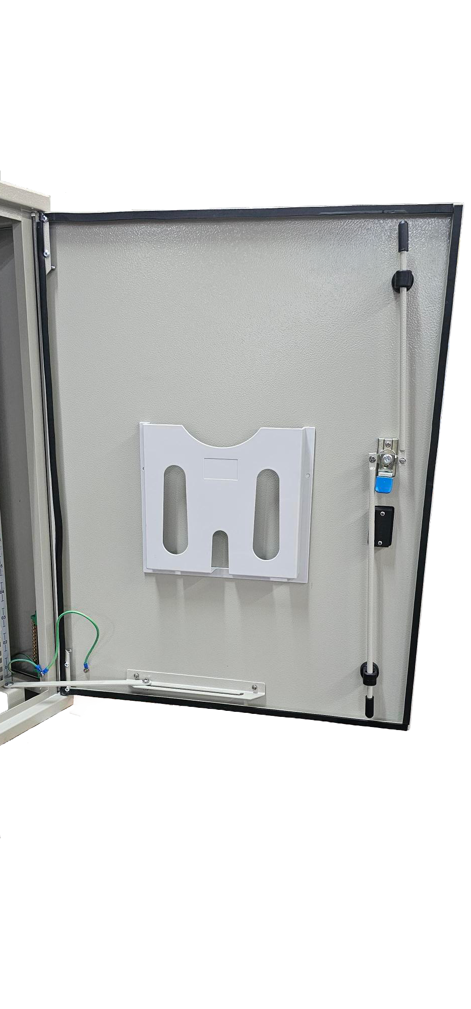 - Porta Frontal: Em chapa de aço com opção cega ou com visor em vidro temperado para visibilidade dos equipamentos internos.
